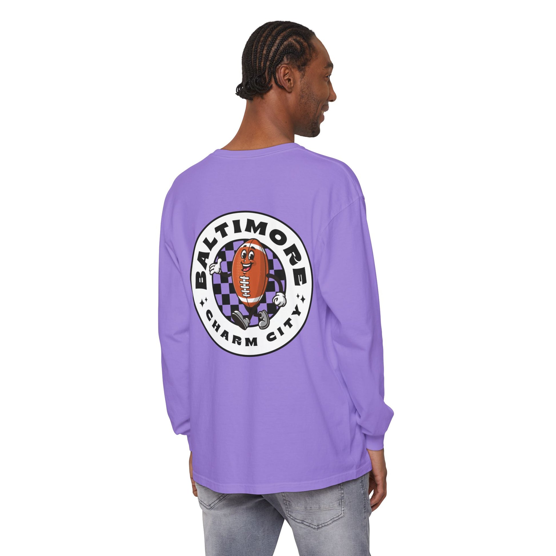 Embrace comfort and style with this unisex long sleeve t-shirt, perfect for sports enthusiasts and Baltimore fans alike. The vibrant design showcases your love for Charm City, making it a standout piece in any wardrobe. Whether you're heading to a game, hanging out with friends, or simply lounging at home, this t-shirt will keep you feeling cozy and confident. It's great for casual outings, game day celebrations, or as a thoughtful gift for sports lovers during holidays and special occasions. This versatile t-shirt suits anyone looking to add a splash of character to their collection while expressing their passion for Baltimore.