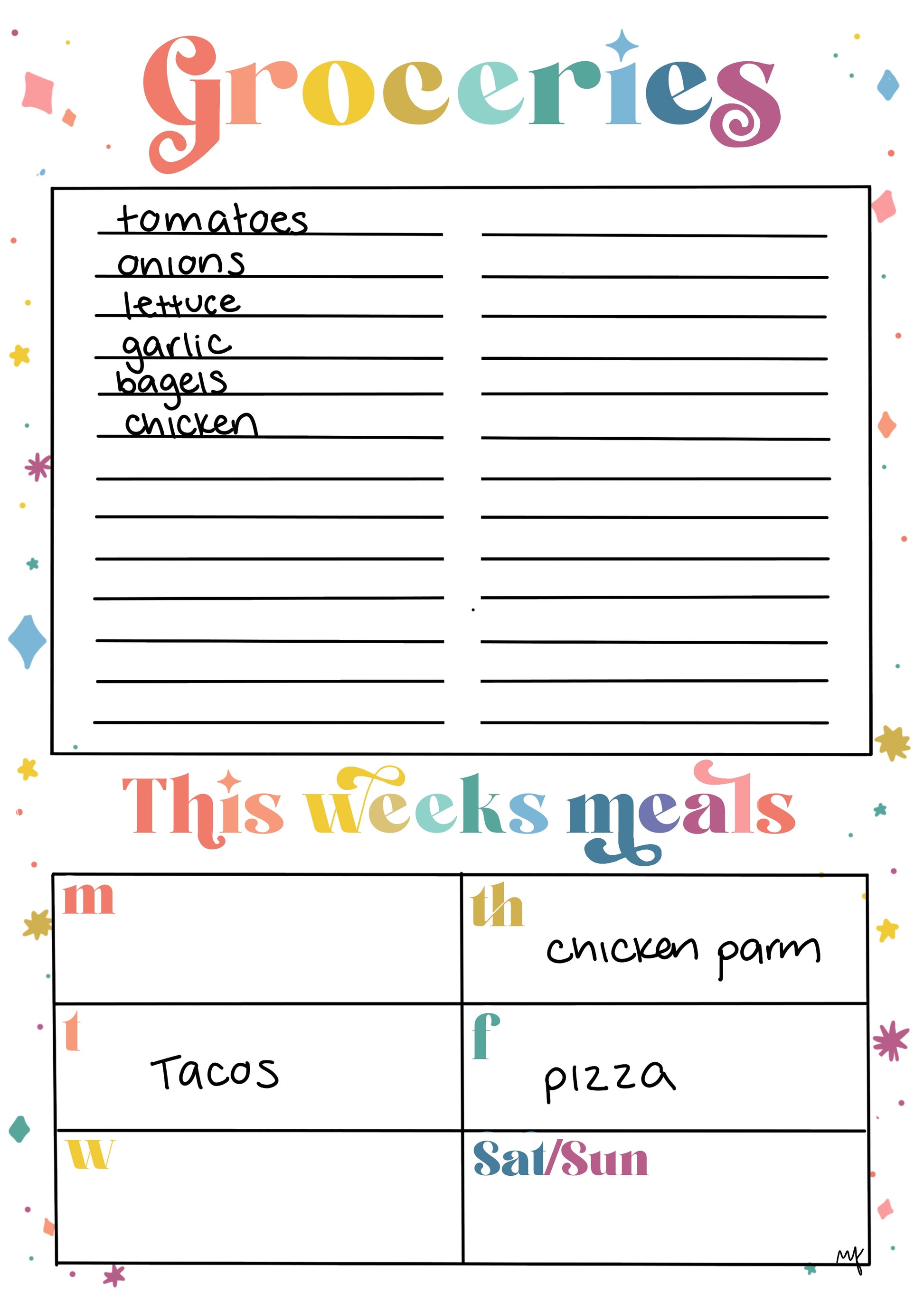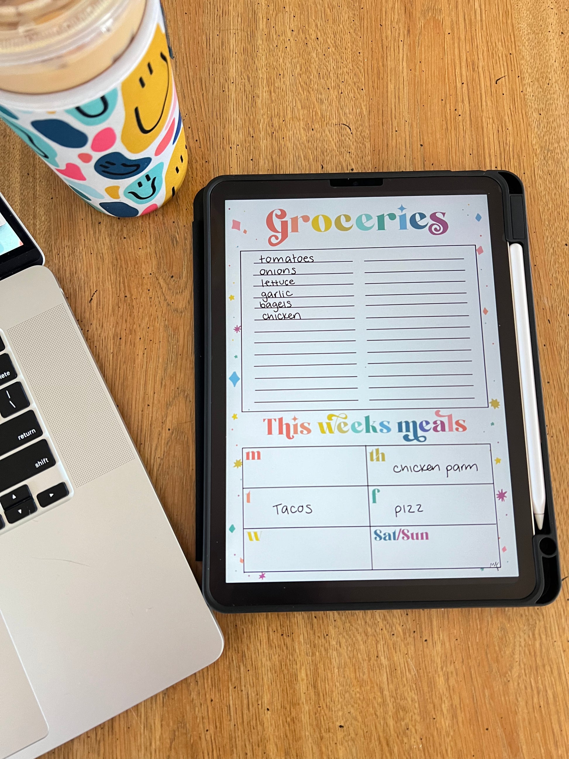 This grocery list design is meal planning and grocery list in one. Everything you need in 1 design. Plan all your meals for the whole week's grocery trip. Works great with the goodnotes app and other devices.