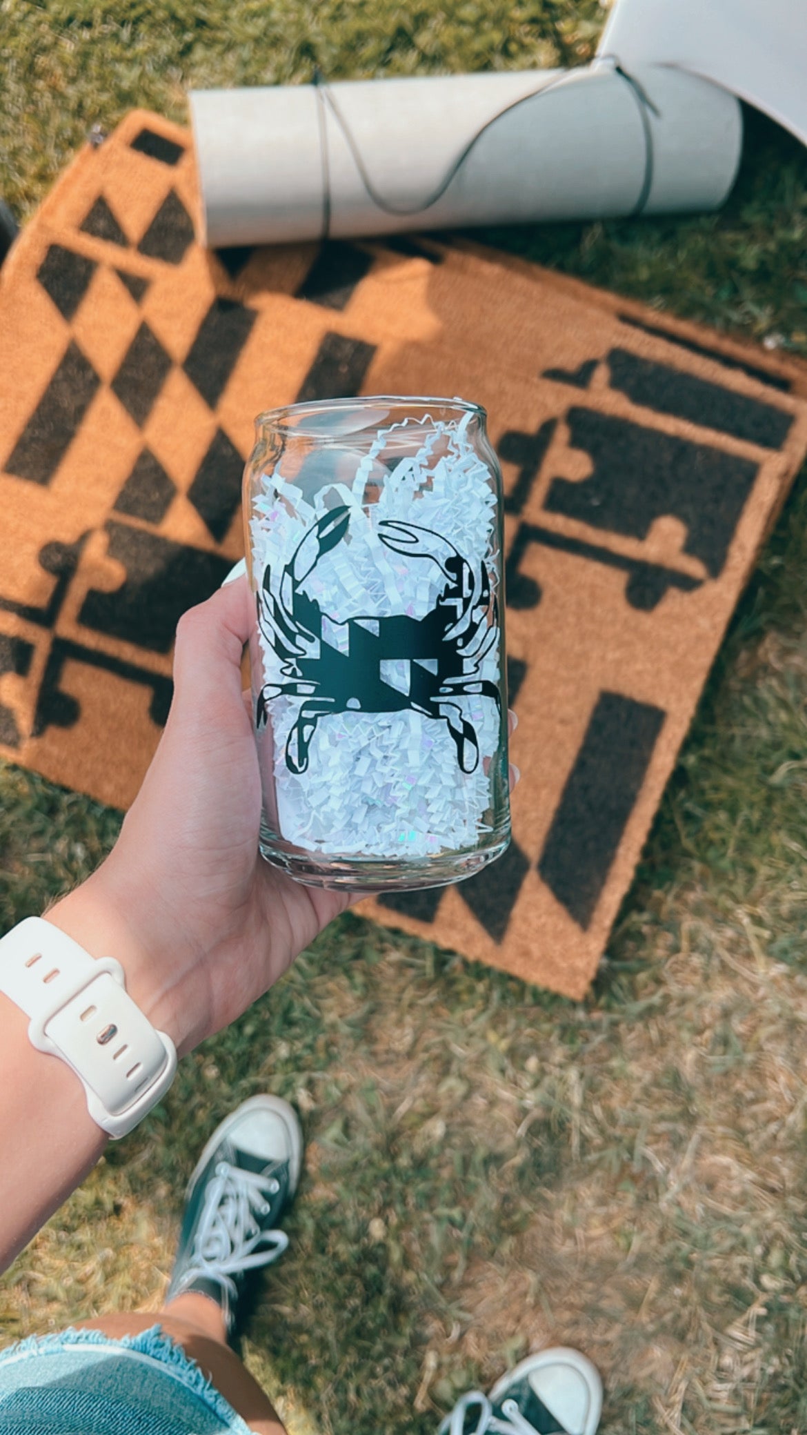 Put a Maryland twist on your happy hour with this fun Flag Crab beer can glass! Perfect for summer BBQs or those days you just need an ice-cold brew, this handcrafted vessel features a classic Maryland flag crab design. Raise a glass - it's time to cheers to the old line state!