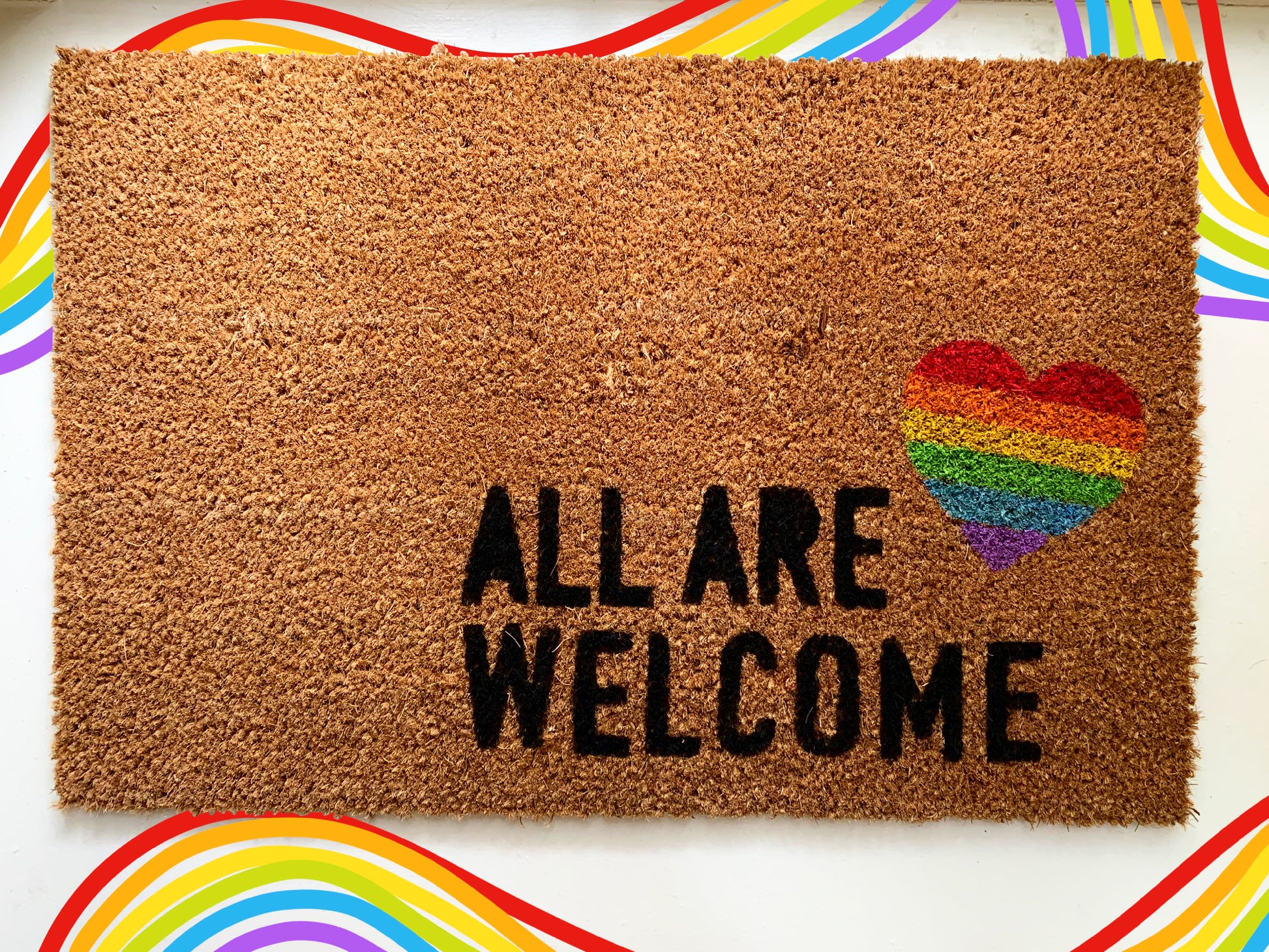 This adorable doormat was made in honor of Pride month to show your neighbors and anyone coming to your home they are welcome and accepted. Great for a classroom as well! This mat is also great for any color loving person as just a cute doormat.