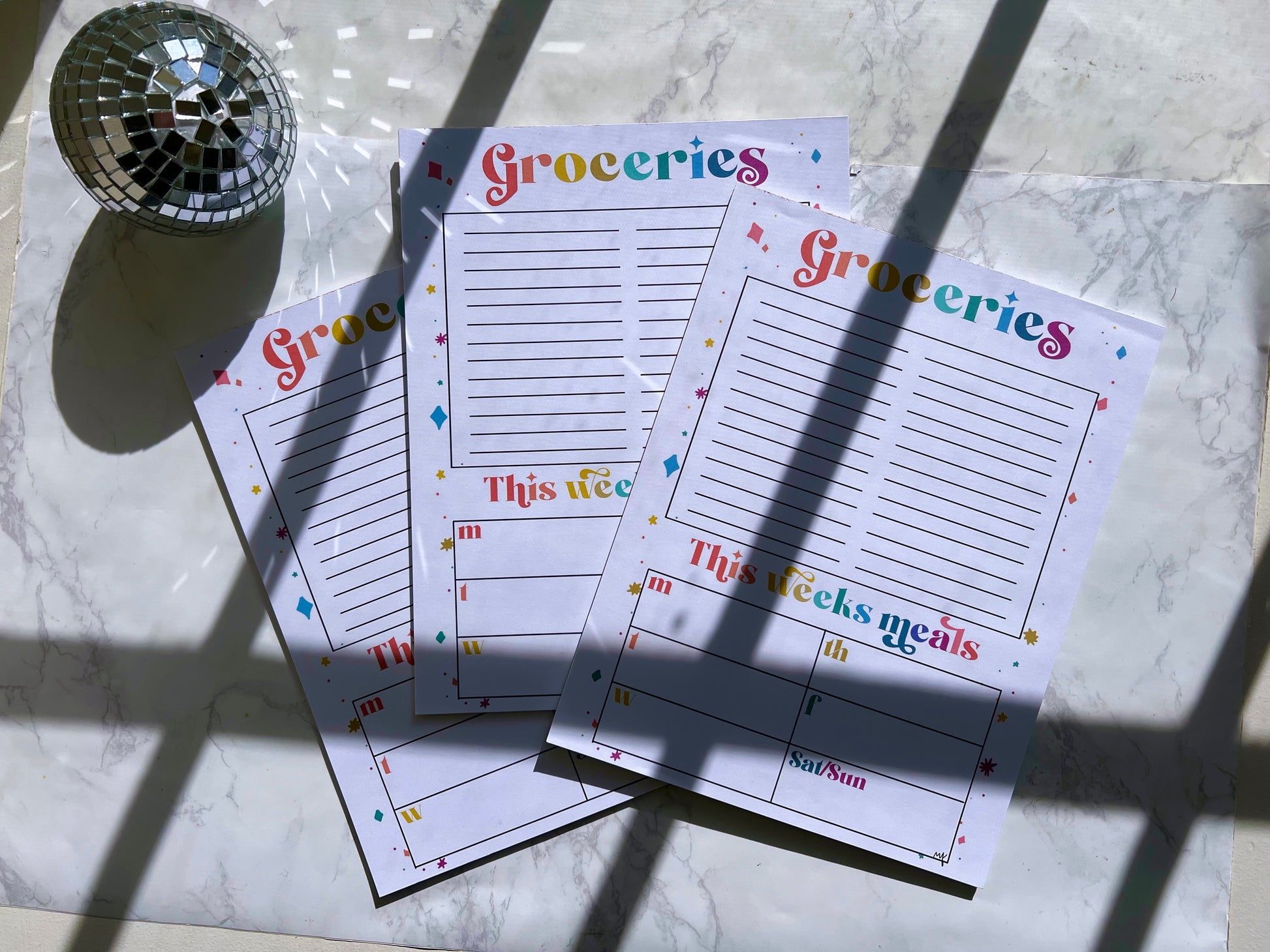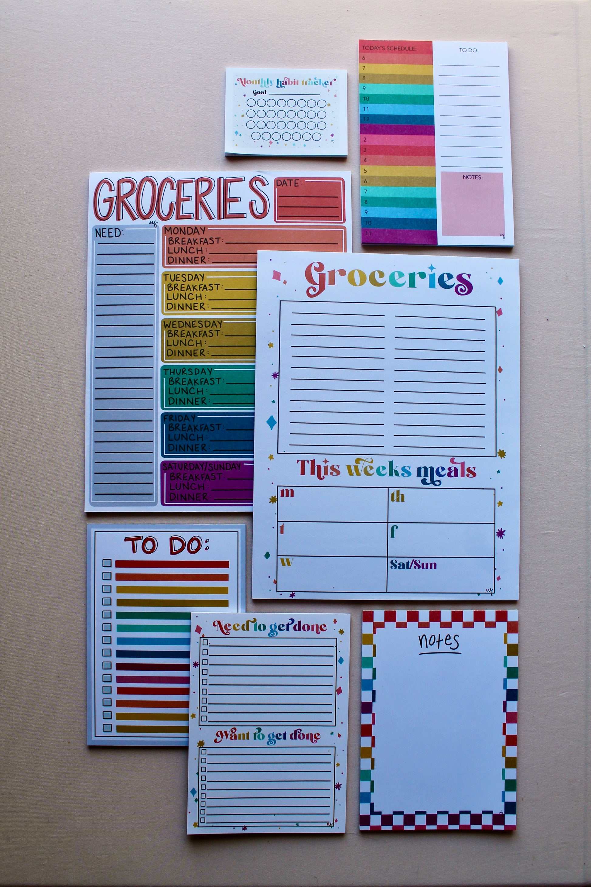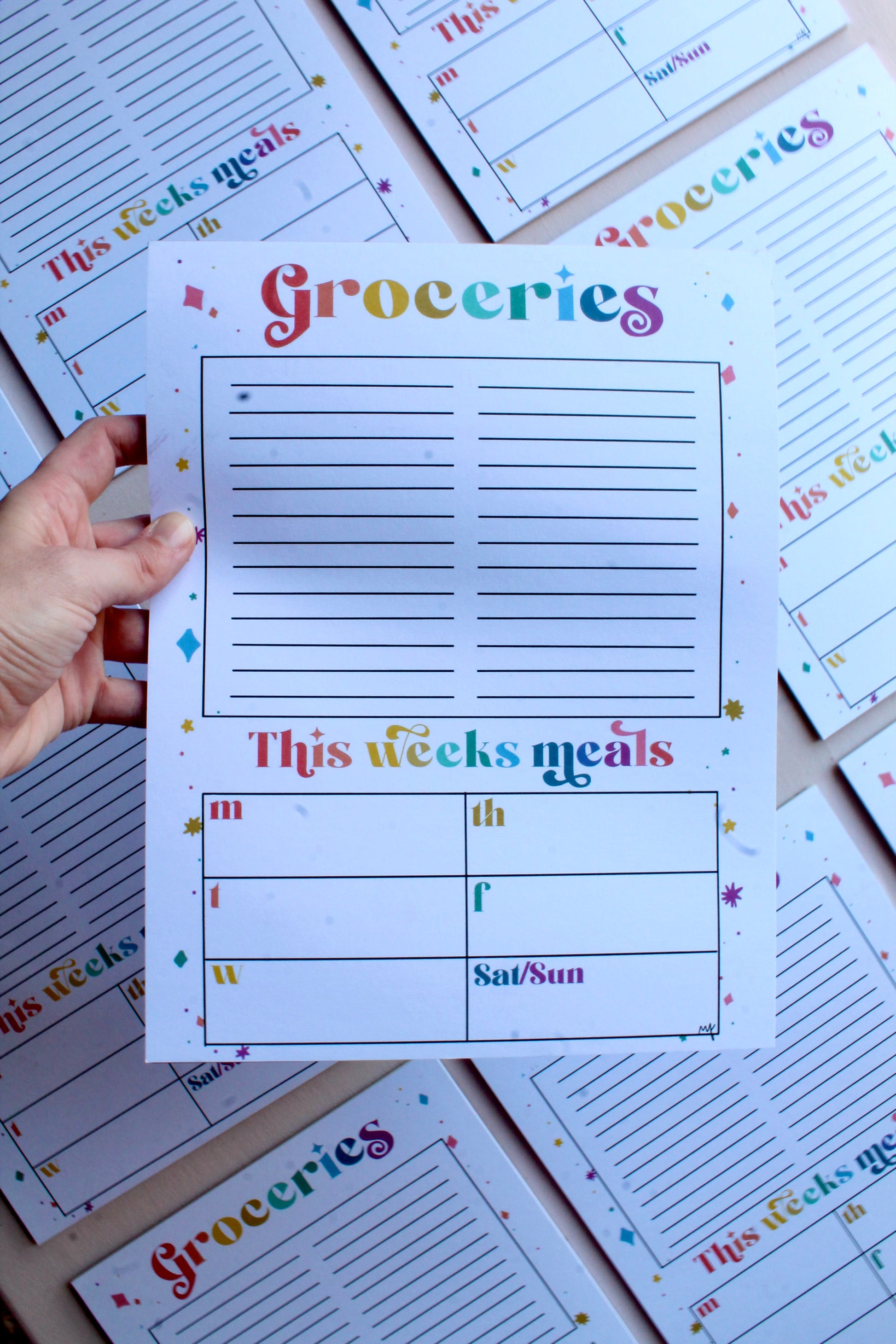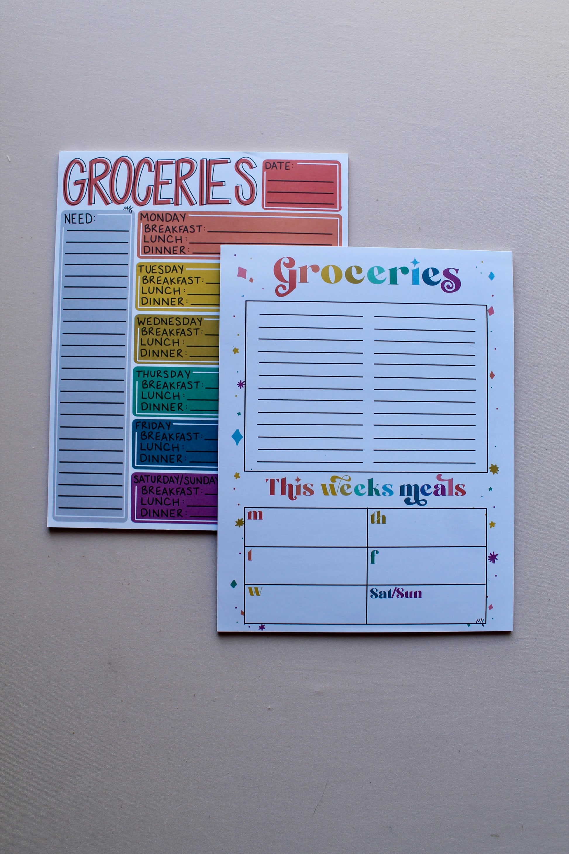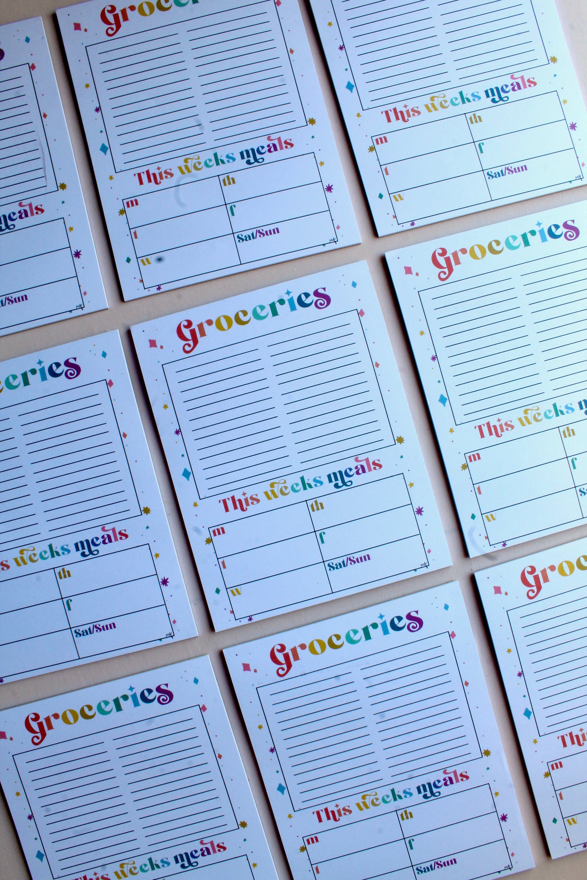 Simple yet colorful grocery pad is great for planning out meals and creating that super long grocery list. Hang it on your fridge so everyone can add to the list and no one has to question what's for dinner this week.