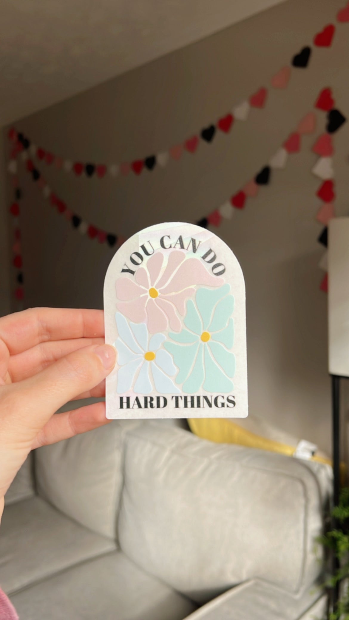 Add some colorful charm to your home with our Rainbow Window Sticker! Just stick it on any window and watch as it creates beautiful rainbows. Available in 2 fun designs - a 'good day to be happy' smiley and a 'you can do hard things' flower. Let this sticker bring some cheer to your day!