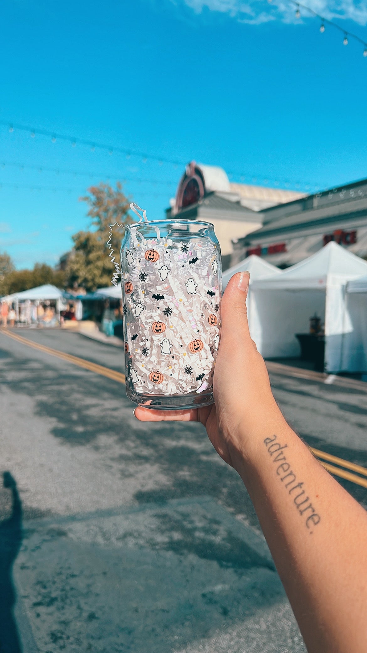 Fill up the Spooky Glass Beer Can for a hauntingly delightful Halloween! With ghosts, pumpkins, and more, it's the perfect way to show your spirit for the festive season. Plus, cheers to spooky sipping! 👻