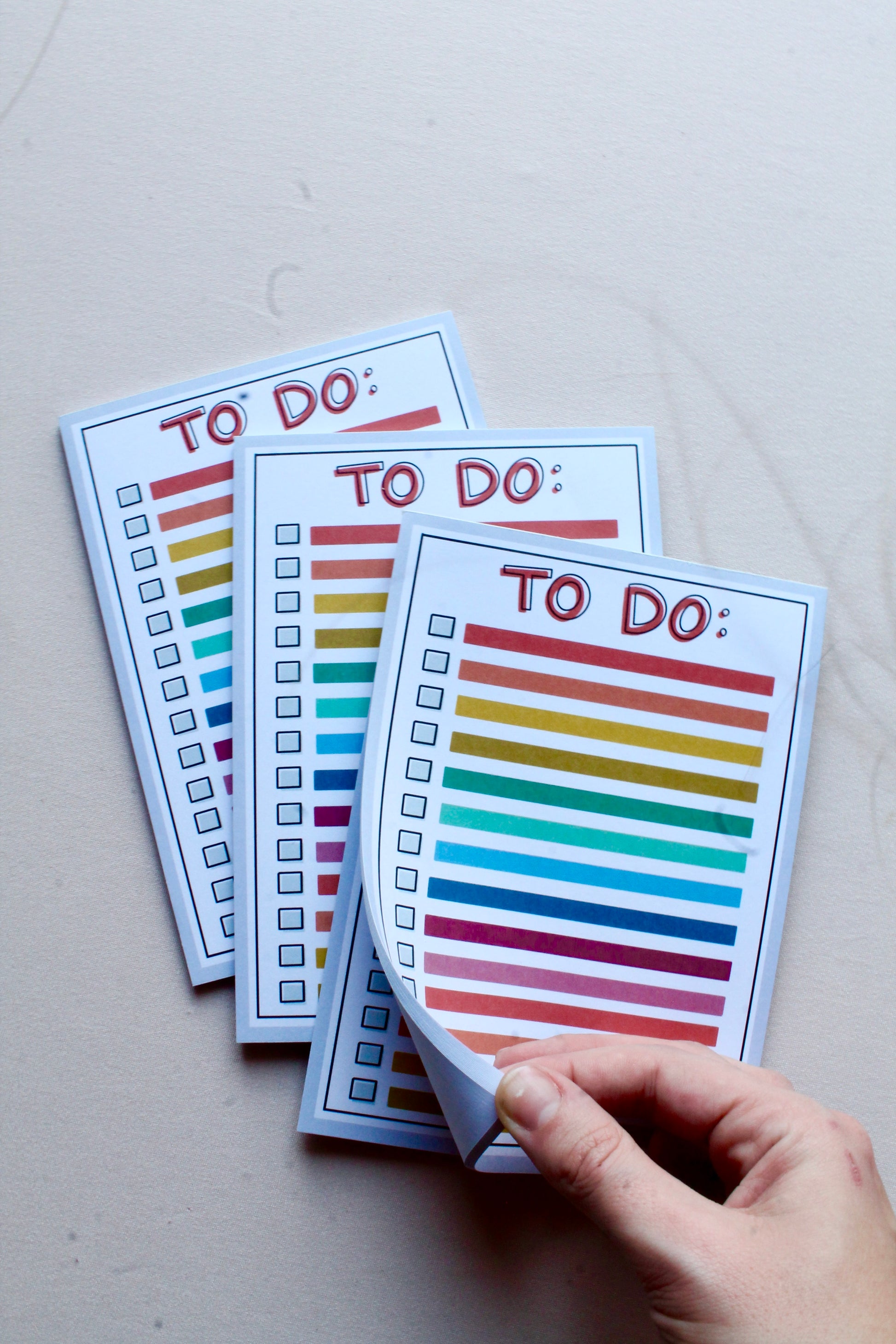 This notepad is perfect to organize all the things on your list. Use it for groceries, chores, school work, anything really! The colors make me happy and the boxes make it easy and satisfying to check off everything!